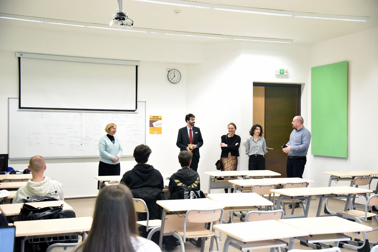 İtalya Büyükelçiliği Kültür İşleri Ofisi Başkanı Riccardo Righelli ve Kültür İşleri Ofisi Temsilcisi Amela Zec Filipović, 7 Mart 2024 tarihinde Kampüs ortamını deneyimlemek ve Konuşulan İtalyanca I dersine kayıtlı öğrencilerle etkileşimde bulunmak üzere Üniversiteyi ziyaret etmiştir.
