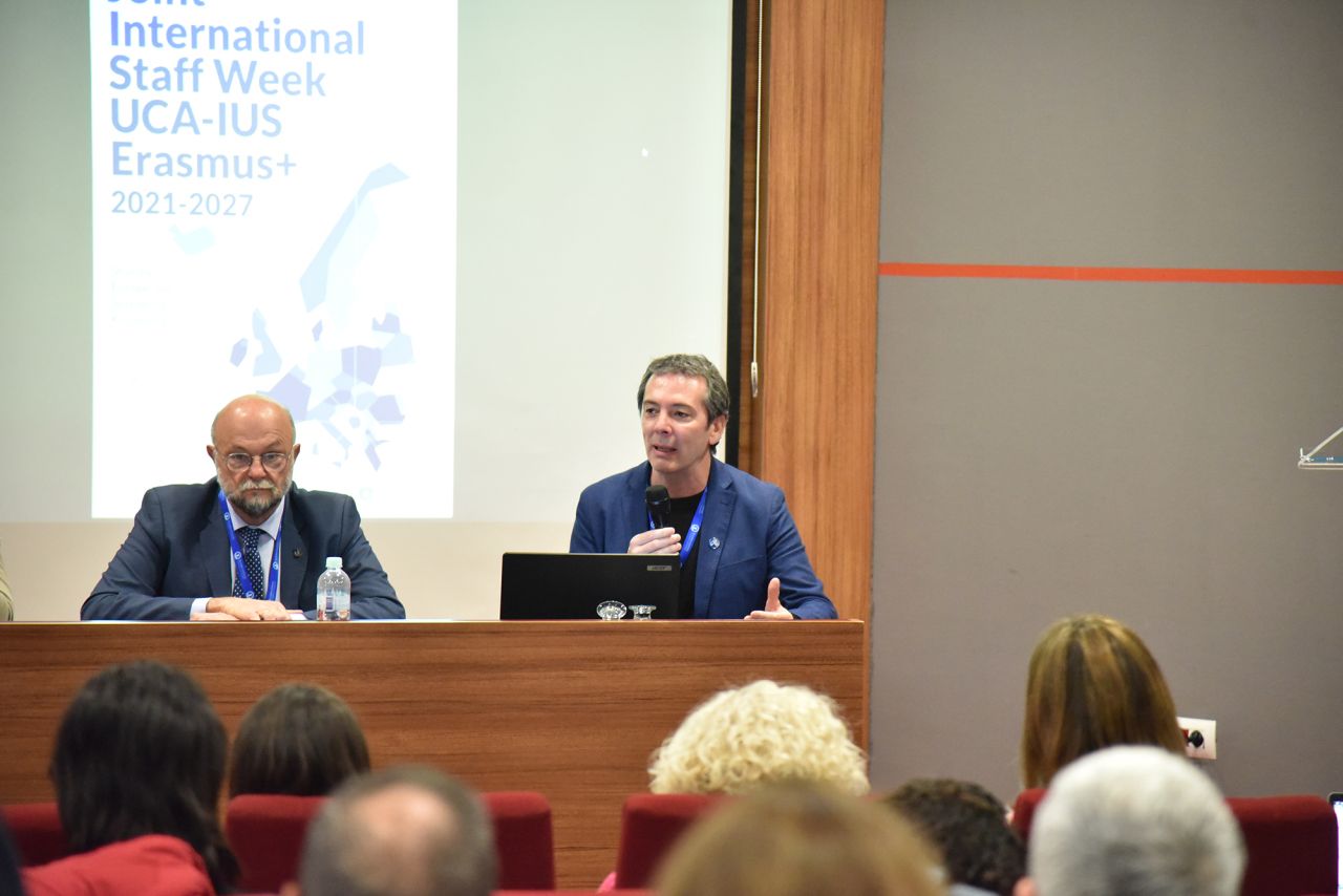 Büyükelçinin konuşmasının ardından Uluslararası Projeler ve Ağlar Sekreterliği Direktörü Sayın Javier Izguierdo Anton, UCA Uluslararası Projeler Birimi tarafından hayata geçirilen Erasmus+ uluslararası projeleri hakkında bir sunum gerçekleştirmiştir. Sunumda kayda değer uygulamalar ve fikirler üzerinde durulmuş, uluslararası projelerin yönetilmesi, üniversiteler arasındaki ortaklıkların güçlendirilmesi ve yeni ilişkilerin oluşturulması gibi konular hakkında bahsedilmiştir.